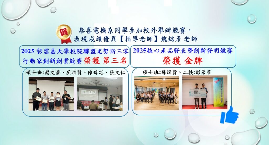 恭喜電機系同學參加校外舉辦競賽,表現成績優異